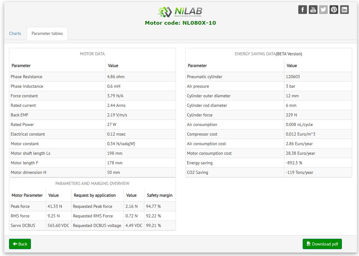 The sizing of linear motors is mainly determined by the application-related characteristics of velocity and feed force. First of all, the user should determine velocity and force profiles for the required application and set the proper parameters about payload, thrust force, ambient temperature and axis tilt. Then, the choice of the motor size is given either by simply calculating its physical limits, or by using a motor sizing application.