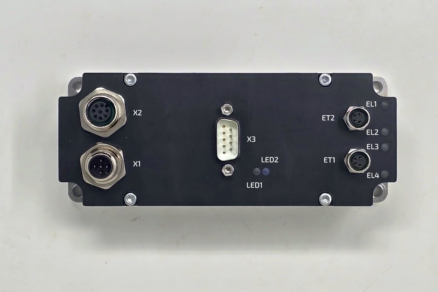 | LED2 | EtherCAT Slave error status | EtherCAT Configuration Error - Led Blinking NO Error - Led off Unsolicited State Change - Led single flash Application Watchdog Timeout - Led Double flash PDI Watchdog Timeout - Led Active | Red |